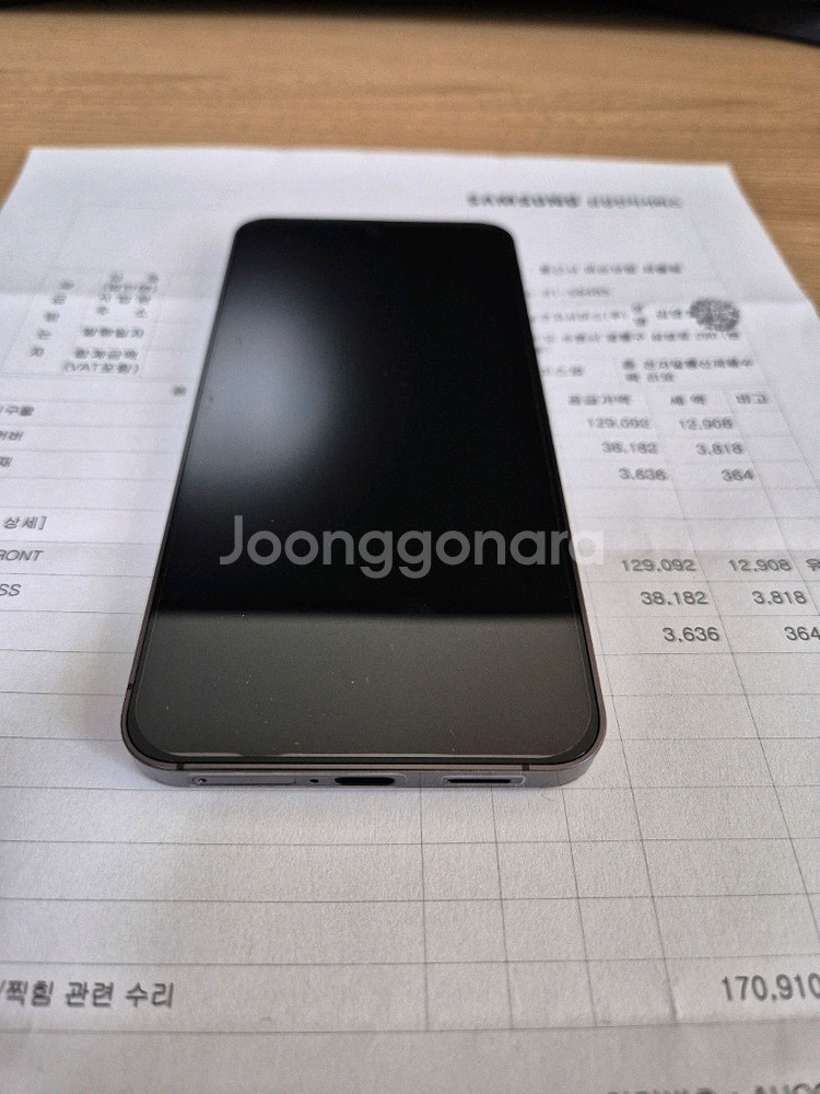 s24 오닉스 블랙 256gb입니다. 24년 4월 LGU+ 최초개통 후 정상해지하여, 요금할인, 선약, 확정기변 가능합니다. 지난달에 전면 카메라 부분에 멍이생겨, s26기변하고 서비스센터 가봤는데 외부에 흠집이 없다며 무상으로 액정 교체받았구요. 액정 교체 받고 필름은 바로 부착하고 보관 하다 오늘 판매를 위해 서비스센터 다시 방문하여 프레임, 배터리, 백글라스까지 모두 교체했습니다. (수리내역 모두 영수증 첨부했습니다.) 외관은 신품동일하며, 보호필름 다 붙어 있습니다. 네고는 불가하니 문의 자제부탁드리며, 울산 직거래나 택배거래 가능합니다. 구입 희망하시는 분은 연락부탁드립니다.
