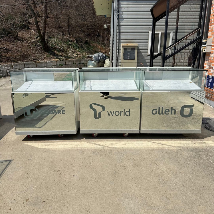진열장 : 가로 90 폭 60 높이 96 ( 3개 ) 가로 150 폭 60 높이 96 ( 1개 ) 인포데스크 : 가로 180 폭 60 높이 75 ( 1개 ) 진열장 4개, 인포데스크 1개 일괄 120 만원입니다 메탈디자인이라 어느매장이든 사용하기 좋습니다 LED조명 다 설치되어있구요 전체적으로 상태 양호합니다 오셔서 직접 보시고 구매하시거나 용달 보내주시면 실어서 보내드립니다 지역은 경기도 시흥입니다 챗주세요