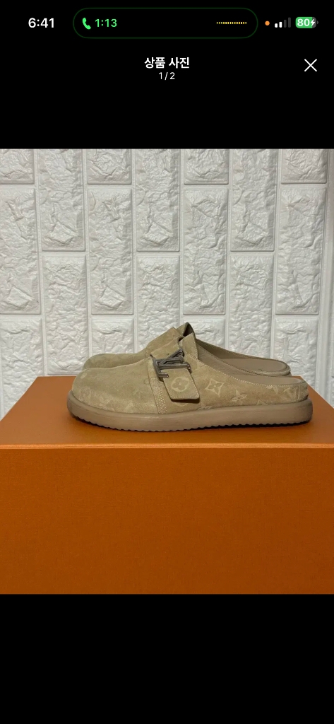 개인정보(거래정보)를 주고받는 행위는 사기에 노출될 수 있으므로 즉시 중고나라로 신고해 주세요루이비통 LV로고 모노그램 스웨이드 뮬 26년 신상 아이보리 컬러 매장 구매 제품 구매내역 보유중