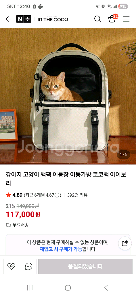 인더코코 반려동물 이동 가방입니다. 미사용 새상품입니다.