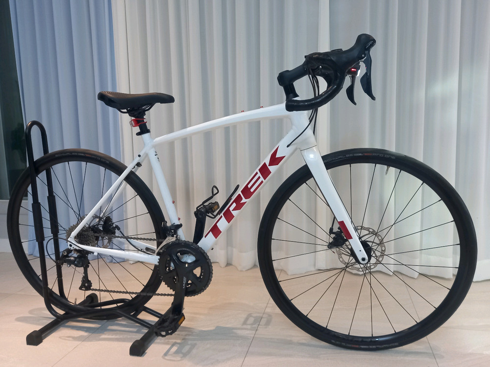 2022년식으로 2022년 7월 송파 율바이크에서 출고되었습니다. 입문형으로 더할나위없이 완벽에 가까운 디스크모델이며 트렉 명품 브랜드 + 신형 풀소라 구동계입니다. 풀소라 18단으로 왠간한 언덕 등반도 잘 올라갑니다. 카본포크인지라 잔진동 잘아줘서 장시간 타도 손목 피로감 낮아서 좋습니다. 초보자가 입문하기 쉬운 그래블향도 지향해서 많이 허리를 숙이지 않아도 되고 도로 사정 안좋은곳과 장거리 라이딩도 할만 합니다. 주행거리는 1천정도로 사진 보시는 것처럼 상태 너무 좋고 판매전 미카닉에게서 점검 받고 판매하여 아무 하자 없이 바로 라이딩 가능합니다. 별도 구매할것 없이 가민 거치대 포함하여 전방 락브로스 라이트 달아놨고 후미등 거치되어 있으며 순정안장 별로라 전립선 락브로스 안장으로 변경하여 장시간 타도 엉통없습니다. 그리고 타이어는 슈발베 프로 원(28C)으로 장착되어 있어서 접지력 좋고 펑크에 강합니다. 사이즈는 54로 키기준 165~185정도에 적합합니다. 동네 마실이나 자전거길로 다녀서 림이 틀어지거나 등등의 문제 아무것도 없습니다. 당시 160정도로 그 절반도 안되는 70에 네고없이 판매합니다. 잠실새내역 부근에서 시승 이후 거래 가능합니다. 자세한 자전거 스펙과 정보는 아래 참고 부탁드립니다. https://www.trekbikes.com/kr/ko_KR/%EC%9E%90%EC%A0%84%EA%B1%B0/%EB%A1%9C%EB%93%9C-%EC%9E%90%EC%A0%84%EA%B1%B0/%ED%8D%BC%ED%8F%AC%EB%A8%BC%EC%8A%A4-%EB%A1%9C%EB%93%9C-%EC%9E%90%EC%A0%84%EA%B1%B0/%EB%8F%84%EB%A7%88%EB%8B%88/%EB%8F%84%EB%A7%88%EB%8B%88-al/%EB%8F%84%EB%A7%88%EB%8B%88-al-3-3%EC%84%B8%EB%8C%80/p/33082/