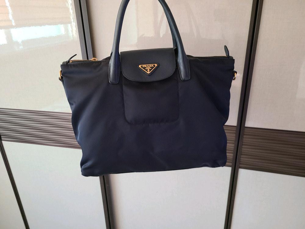 프라다 사피아노 나일론 포코노백 BN2541 모델이고 당시 구매가로 100만원 정도인 제품이에요. 사이즈가 조금 여유있어 기저귀 가방으로 가능하고 이것저것 넣고 다닐 수 있습니다. 무엇보다 가방이 가볍고 스트랩 탈부착 가능해서 손가방, 크로스, 숄더 다 가능해요. 색상은 다크네이비고 구매한지 좀 됐지만 보관 위주로 모서리 까짐도 없고 금장도 깨끗하고 관리가 잘돼 정말 깨끗합니다. 구성품도 개런티 카드, 프라다 카드 등 있어요. 좋은 가격으로 올립니다.