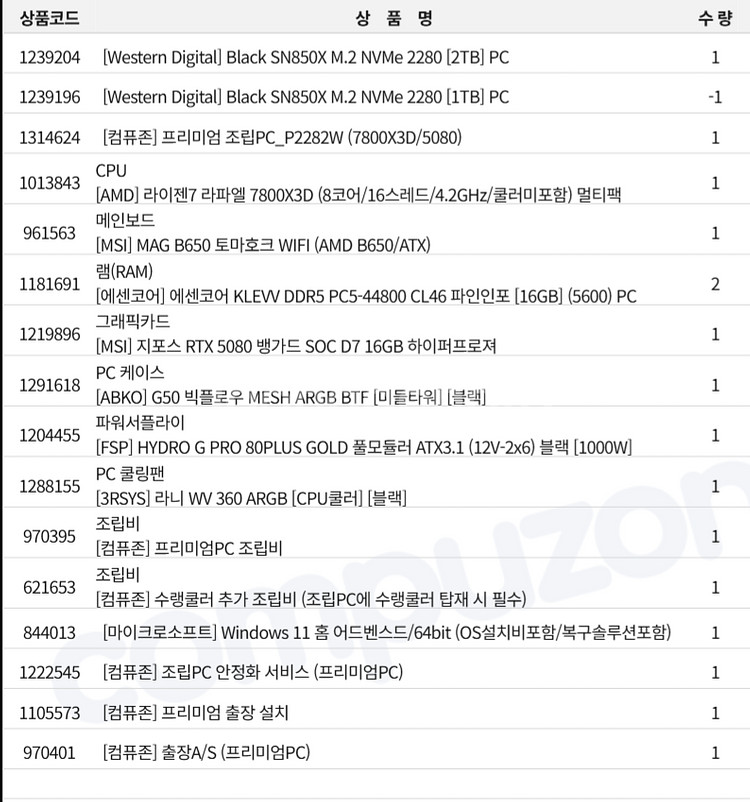 컴퓨존에서 구매한 고사양 프리미엄 PC 판매합니다 올해 1월 26일 구매하였고, 현시점 약 500만원 견적인 고사양 조립PC인데 막상 고사양 스팀게임을 딱히 즐기지 않아 과한 것 같아 판매합니다. 구매하시면 PC초기화 및 영수증 첨부해서 드릴 수 있으며, 램 제외 부품박스도 다 보유중입니다. 컴퓨존에서 구매한거라 A/S도 편하게 받으실 수 있으며 안정화 서비스까지 받아두었습니다 판매상품 특성상 가지러 오셔야 할 것 같으며, 가산쪽 디지털단지오거리 근처면 구루마로 가져다드릴 순 있습니다 쿨거시 400에 드립니다. 사양: - CPU: AMD 라이젠7 7800X3D - 메인보드: MSI MAG B650 토마호크 WIFI - 램: 에센코어 KLEVV DDR5 PC5-44800 CL46 16GB (5600) x2 (총 32GB) - 그래픽카드: MSI 지포스 RTX 5080 뱅가드 SOC D7 16GB 하이퍼프로저 - SSD: Western Digital Black SN850X M.2 NVMe 2280 2TB - 케이스: ABKO G50 빅플로우 MESH ARGB BTF (블랙) - 파워: FSP HYDRO G PRO 80PLUS GOLD 풀모듈러 ATX3.1 (12V-2x6) 블랙 1000W - 쿨러: 3RSYS 라니 WV 360 ARGB (블랙) - 운영체제: 마이크로소프트 Windows 11 Home