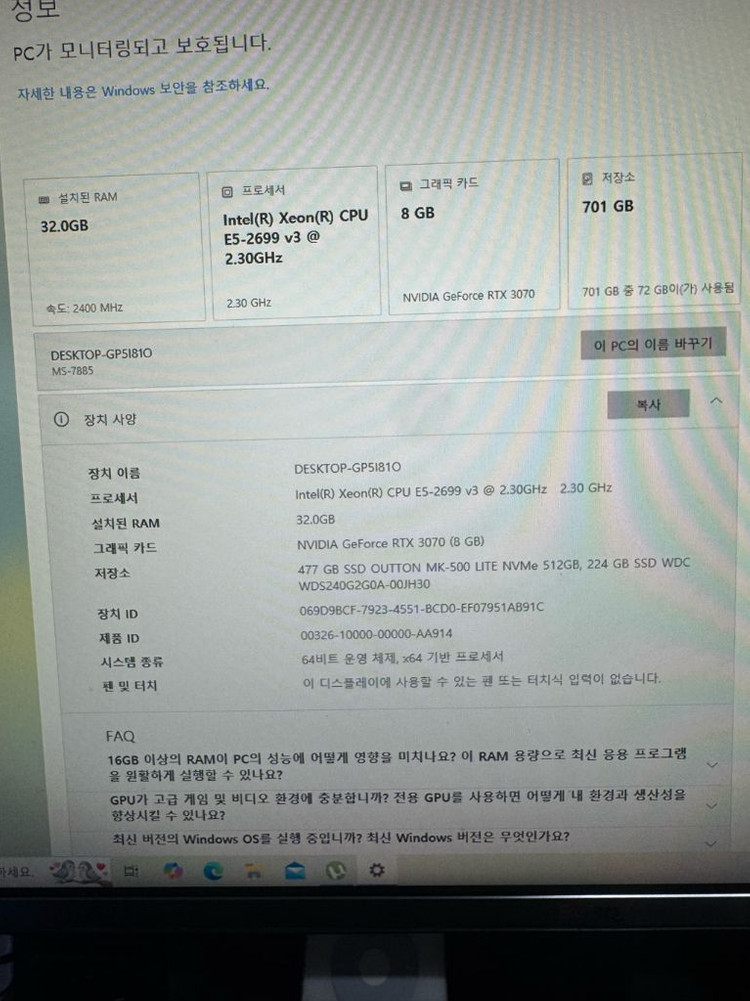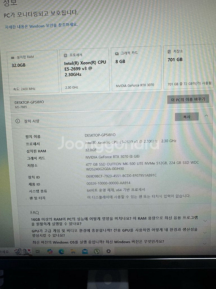 인텔 제온 e5 2699v3 프로세서 MSI Mag Gaming 케이스 600와트 전원 공급 장치 기가바이트 3070 8GB 3-HDD 비디오 카드 32기가바이트의 RAM MSI X99s Gaming 7 메인보드 M2 512GB 디스크 mck SSD 256GB 러빙쿨 워터 쿨링 반품 및 교환 절차가 복잡합니다.