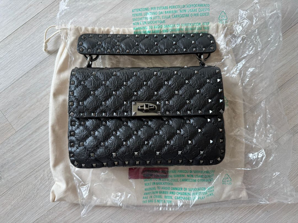발렌티노 락스파이크백 미디움 판매합니다 코로나로 인해 롯데면세점에서 인터넷으로 제품 할인판매 할 때 구매했었습니다 박스는 처음부터 택배박스같은 재질의 박스에 담겨왔고 착용후에는 항상 배송받은 그대로 포장하여 실리카겔 넣어서 보관했습니다 스트랩은 사진에 없는데 가방 안에 들어있습니다 사용감 거의 없이 상태 좋아요 버클에만 살짝 있는데 사진 참고해주세요 크랙 가죽에 흑니켈이라 금색찡 박힌 일반 스파이크백보다 안촌스럽고 훨씬 예쁩니다 아무옷에나 다 잘 어울려요 크로스백/숄더백으로 연출 가능 배송비는 4500원이며 우체국 택배로 보내드려요 계좌이체시 네고해드려요 구매하실분만 연락주세요!