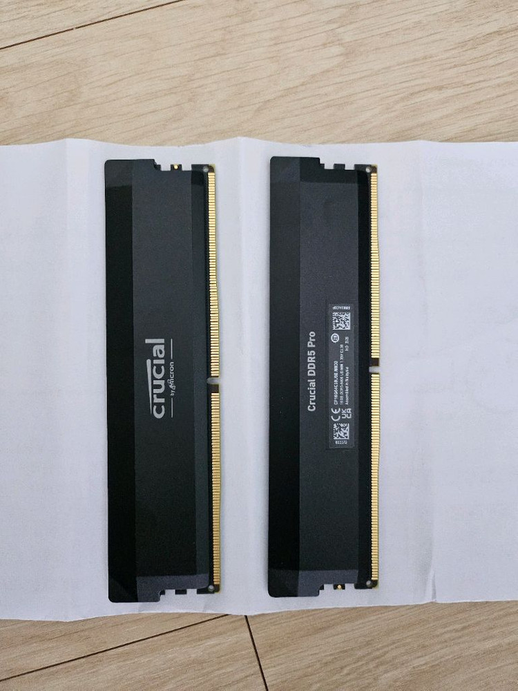제품명: 마이크론 Crucial DDR5-6400 CL38 PRO Overclocking 패키지 (32GB / 16GB x 2개) 용량: 32GB (16GB 2매 구성) 속도: 6400MHz (PC5-51200) 램 타이밍: CL38-40-40-84 전압: 1.35V XMP 3.0 & AMD EXPO 지원: 인텔과 AMD 시스템 모두에서 간편하게 오버클럭 성능을 끌어올릴 수 있습니다. 알루미늄 방열판: 세련된 블랙 무광 방열판이 장착되어 발열 해소에 탁월하며 디자인이 깔끔합니다. Non-RGB: LED가 없는 깔끔하고 묵직한 디자인을 선호하시는 분들께 추천드립니다. 사진 보시다시피 외관 매우 깨끗하며 탈거 전까지 오류 없이 정상 작동 확인했습니다. 순정 상태로도 성능이 훌륭하고, 오버클럭 에디션이라 안정성도 뛰어납니다. 64gb로 업그레이드 후 보관 중이다가 판매합니다.