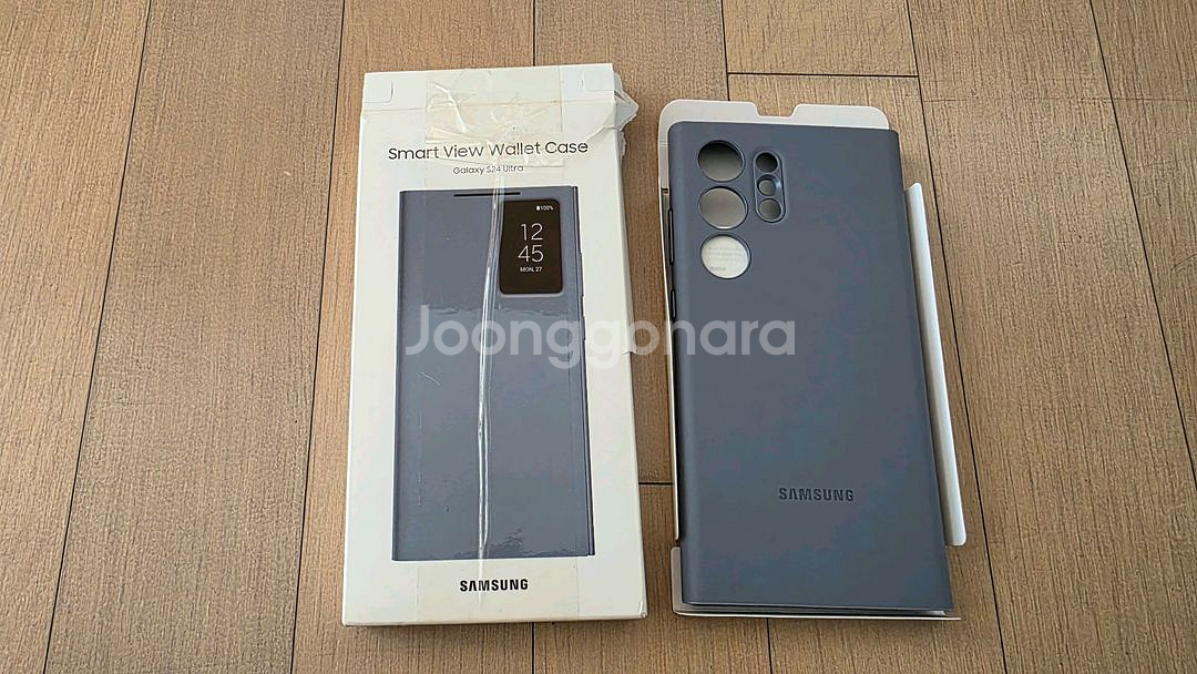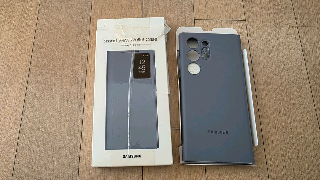 삼성 갤럭시 S24 울트라 스마트 뷰 월렛 케이스 바이올렛 색상입니다. 박스 포함된 정품 케이스이며, 박스 상태는 안좋은데 사용하지 않은 상품입니다. 케이스를 닫은 상태에서도 화면을 통해 시간, 날짜, 배터리 상태 등 주요 정보를 확인할 수 있어 편리합니다. 내부에 카드 수납 공간이 있어 실용적이며, 스마트폰 화면을 안전하게 보호해 줍니다.