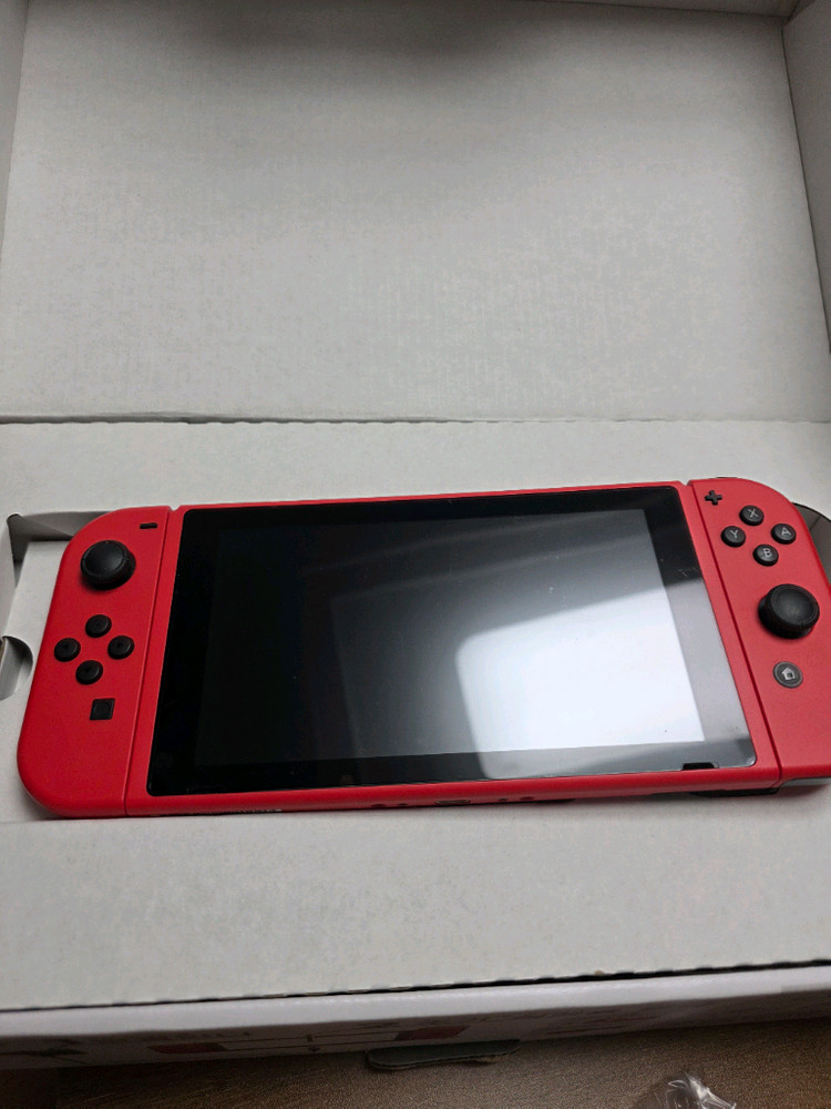 닌텐도 스위치 마리오 레드 에디션 판매해요 본체와 조이콘, 충전 케이블, 그리고 다양한 액세서리 포함이에요 사진에 보이는 테니스 라켓 모양 액세서리, 운전대 모양 액세서리, 프로컨트롤러, 게임 케이스 등 모두 드려요 프로컨트롤러는 제노블레이드 크로니클스 에디션이에요 본체와 조이콘 모두 레드 색상이에요
