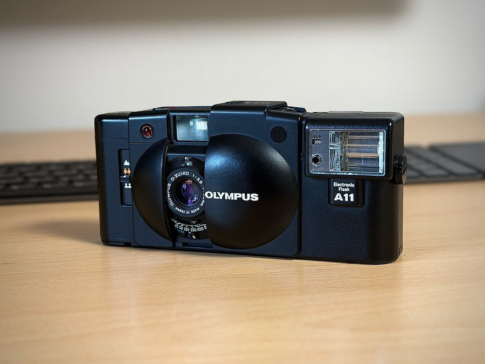 올림푸스 XA2 필름카메라, A11 플래시 세트, 정품 파우치 세트입니다. 가볍고 명기 D.Zuiko 1:3.5 f=35mm 렌즈로 결과물이 뛰어납니다. 내부, 외부 모두 크게 눈에 띄는 흠집 없습니다. 점검 및 차광스펀지 교환 완료했고, 필름넣고 사용하시기만 하면 됩니다. 필요하시면 정품 파우치도 같이 드립니다. 먼저 연락주신분께 판매하겠습니다.