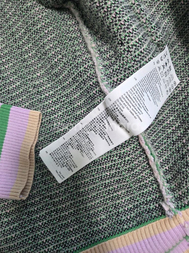 니트 가디건이에요. 그린 베이스에 퍼플과 베이지 스트라이프가 포인트로 들어간 예쁜 디자인입니다. 상태 양호하고 따뜻하게 입기 좋아요!
