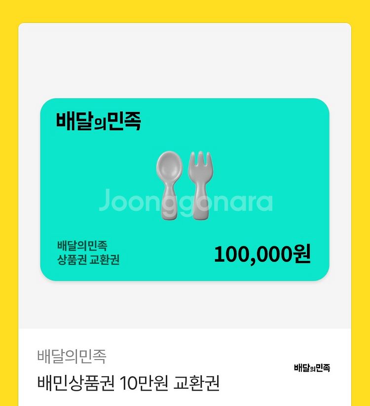 배달앱에서 사용 가능한 10만원 상품권이에요. 2장있습니다