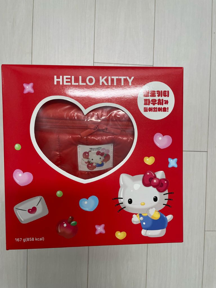 세븐일레븐 헬로키티 패딩 손잡이 수납 파우치 레드 발렌타인 키티 쎄븐