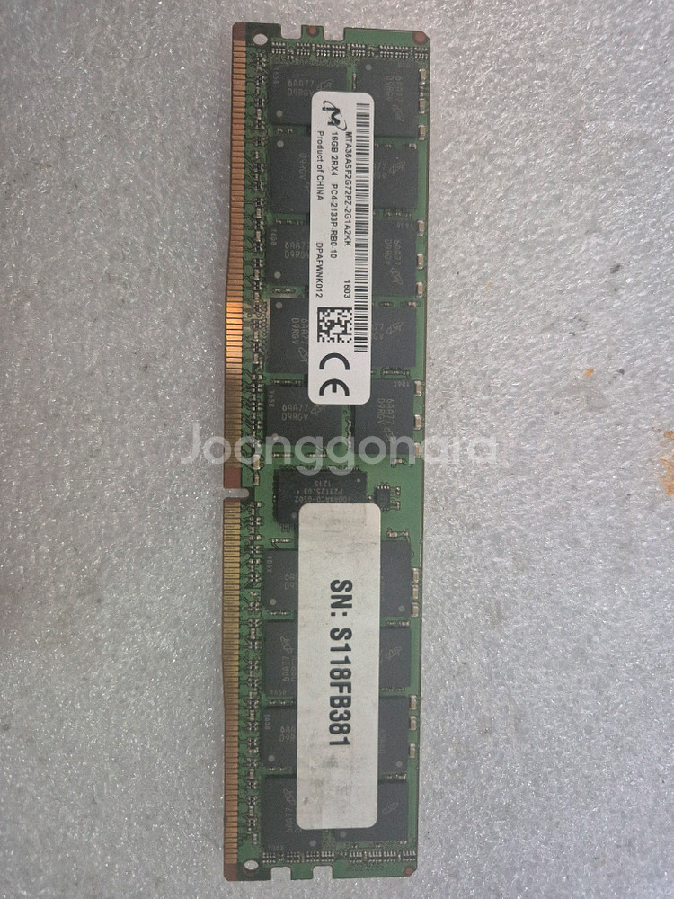 개인정보(거래정보)를 주고받는 행위는 사기에 노출될 수 있으므로 즉시 중고나라로 신고해 주세요마이크론 16GB PC4-2133P 서버용 램 판매합니다. 정상 작동 확인했습니다. 택배비는 3.000원 입니다