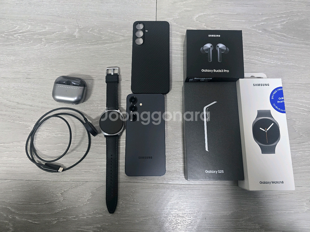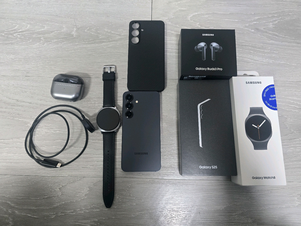 1. 갤럭시 s25 블루블랙 512gb (플러스 아님) 25년 2월 23일 첫 사용이며 구하기 힘든 블루블랙 색상입니다 액정부분 기스는 필름에 생긴 자국이니 참고해주세요 2. 갤럭시워치8 44mm 블루투스 모델 (그레이) 생산년도 25년 7월이며 케이스 없이 사용해서 테투리부분 생활기스 있습니다 3. 버즈3 프로 (그레이) 케이스 사용하지 않아 생활기스 있으며 25년 3월 제조된 기기입니다 3개 일괄로만 판매하며 시세들 다 비교해보고 충분히 싸게 올린거라 네고는 안합니다 전북 남원에서 직거래도 가능하고 택배도 가능합니다