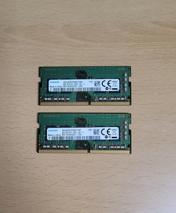 삼성 노트북 램 DDR4 8GB 메모리 2개 세트 상태 양호하고 정상 작동 확인했어요. 컴퓨터 업그레이드나 추가 메모리 필요하신 분께 추천드려요! 1개도 판매 가능. 6만.