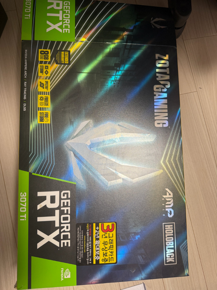 ZOTAC GAMING GeForce RTX 3070 Ti AMP Holo 그래픽카드 팝니다 박스 및 구성품 모두 포함되어 있습니다 구매 당시 이벤트 참여하여 수령한 zotac 그래픽카드 지지대 팝니다 rgv입니다 (조립사진참고) 개인 게임용(롤/배그)으로 사용했습니다 - 향상된 레이 트레이싱 및 DLSS 기능으로 고성능 게이밍에 적합합니다 - 홀로블랙 디자인으로 독특한 외관을 자랑합니다 - 8GB GDDR6X 메모리를 탑재했습니다 중고거래 특성상 직거래 선호합니다 (용인 수지/서울 강남, 그 외 지역도 멀지않으면 제가 가드립니다) 가격은 40만원 입니다 택배거래 가능하나, 교환환불 어렵습니다
