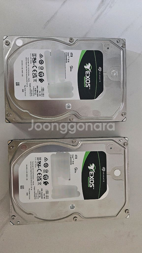Seagate Exos 7E10 4TB 하드디스크 2개입니다 모델명 : ST4000NM025B SAS 타입입니다. 업무용으로 구매했으나 사용중인 NAS와 맞지 않아 사용하지 못했습니다. 개봉된제품이라 싸게 팝니다 양천향교역 근처에서 직거래 가능합니다.