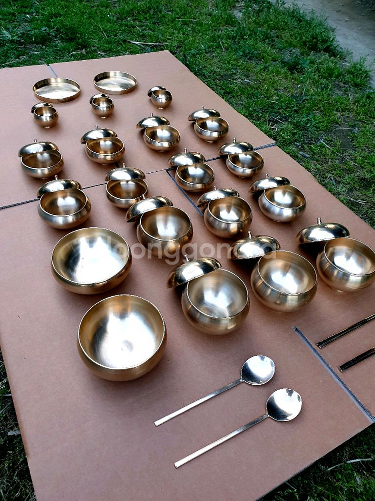뿌리깊은나무 반상기 유기그릇 판매합니다. 1970년대에 할머님게서 부산에서 150만원을 주고 구입하셨다고 하네요-정확하게 56년 된 제품 입니다- 그릇 밑부분에 '뿌리깊은나무 반상기'라는 이름이 새겨져 있습니다. 국가지정 중요무형문화재 제77호 유기장 기능보유자이신 고 윤재덕 선생님께서 직접 제작하신 옥바리 그릇입니다 1994년에 돌아가셔서 더 이상 만들 수 없고, 직접 제작하여 같은 모양, 같은 크기를 여러 벌 구하기 어려운 그릇이라고 합니다. 최근에 나오는 유기그릇보다 그릇 두께가 더 두껍습니다.(직접 재 보니 1~2mm입니다.) 최근에 공장에서 찍어내는 유기그릇들보다, 직접 만든 유기그릇이 더 좋다고 하네요. 차례, 제사 지낼 때 쓰시거나, 한식 요리 담을 때 쓰시면 좋을 것 같습니다. (윤재덕 선생님 프로필) 1914-1994. 중요무형문화재 유기장 기능보유자. 전라남도 임실 출생. 유기점을 해온 조부 윤화섭의 가문에서 출생하여 일찍부터 그의 고향인 전라북도 임실군 성수면 오봉리 원회촌에서 놋쇠 다루는 일을 자연스럽게 배웠다. 16세 되던 해부터 이웃 김여칠의 일터에서 징, 대야, 유반, 괭과리 등을 만들고 점차 기술이 늘면서 방짜 식기류를 만들기 시작하였다. 그는 힘이 좋아 메질, 집게질, 가질 등 방짜쇠를 다루는 여러 가지 기술면에서 뛰어난 솜씨를 나타내었으며 특히 궁그름 옥성기의 장인으로 손꼽혔다. 1차 주조과정을 거친 후 궁그름대라는 도구를 이용하여 완성되는 궁그름 옥성기의 제작방식은 주조와 단조가 어우러져 성형되는 일명 반방짜 방법으로써 소리와 색이 뛰어난 유기의 효율적 생산방법이라 할 수 있다. 25세가 되던 1939년 이후에는 임실을 떠나 순천의 김호유기점, 여수의 송행두유기점, 곡성의 옥과유기점 등지에서 유기제작에 종사하였다. 이후 순천 금곡동에 유기공장을 차려 운영하고 있을 당시 뿌리깊은나무사에서는 전통문화육성사업의 일환으로 유기장을 찾게 되면서 당시 이름이 나 있었던 윤재덕의 방짜유기업을 후원하기에 이르렀다. 그리하여 1979년 6월 전남 보성군 벌교읍 증광리 세동부락의 ‘가는굴 유기공장’에서 제자들과 더불어 옥바리 방짜반상기를 만들면서 전통공예의 전승작업에 동참하게 되었다. 한평생을 유기일에 바쳐온 그간의 업적으로 1983년 6월 국가지정 중요무형문화재 제77호 유기장 기능보유자로 인정받았다. 출처:[네이버 지식백과] 윤재덕 [尹在德] (한국민족문화대백과) 010-5148 -7750(문자 주시면 연락 드리겠습니다)