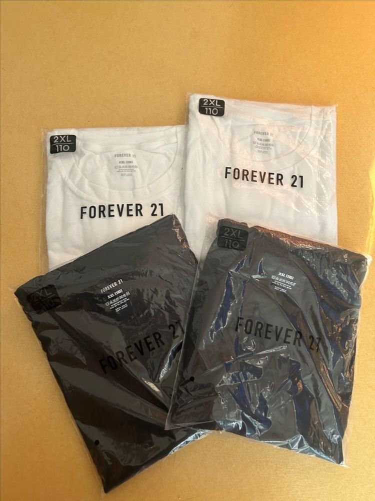 포에버21 반팔티셔츠 이너로 입기 좋어요 미개봉 새제품 사이즈 105 XL. 4장 15000원 110 XXL 4장. 15000원 화이트2개 블랙2개 4개 전부 일괄입니다 예약은 사절할께요 하도 약속을 안지키셔서요 판매가 15000원 특가 택배 4000원 추가가능 합니다