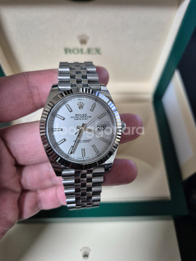 개인정보(거래정보)를 주고받는 행위는 사기에 노출될 수 있으므로 즉시 중고나라로 신고해 주세요 롤렉스 데이저스트 41mm 스틸 흰판 바 팝니다 126334 22년 10월 국내스탬핑 영수증포함한 구성품 풀셋 생활기스외 상태양호합니다