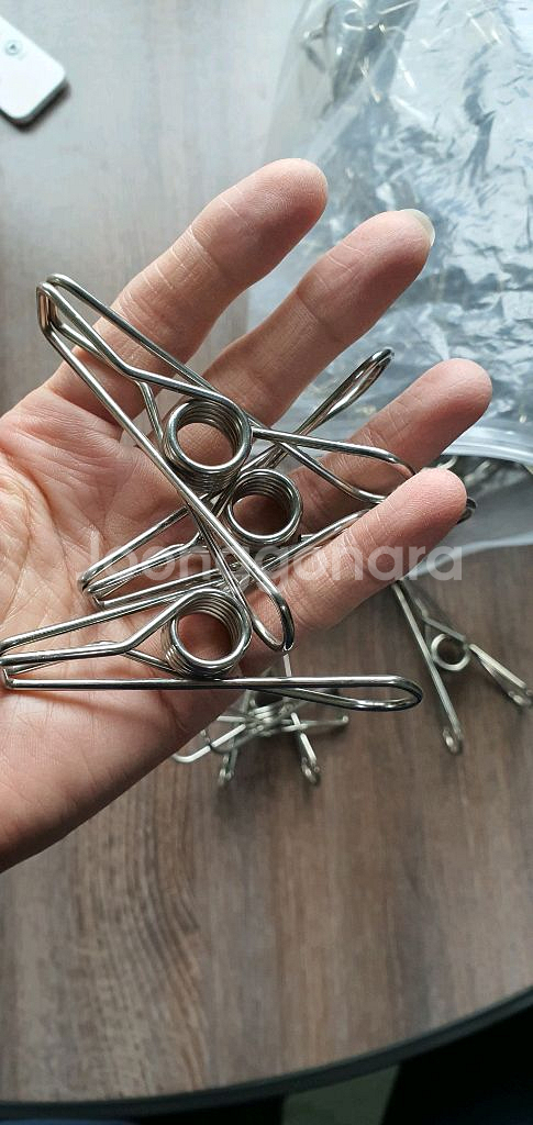개인정보(거래정보)를 주고받는 행위는 사기에 노출될 수 있으므로 즉시 중고나라로 신고해 주세요304 올스텐으로 만들어진 튼튼한 집게입니다. 녹이 슬지 않아 반영구적으로 사용 가능합니다. 한 봉지에 50개씩 들어있고 총 두봉지가 있어 추가구매 가능합니다 10개 씩 소량 구매도 가능합니다