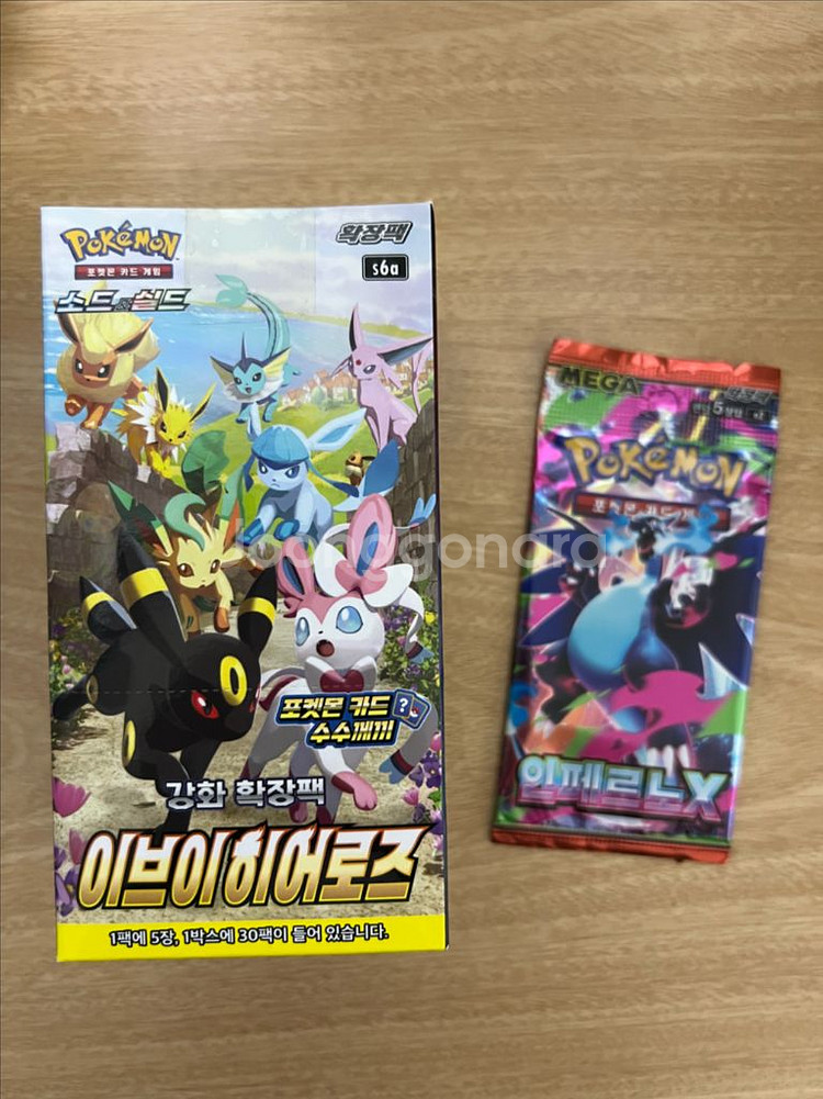 포켓몬카드 박스 이브이 히어로즈입니다 사진보시면 알겠지만 박스 상태가 s급은 아니라 크림 시세 아래로 팝니다 서비스팩도 드립니다