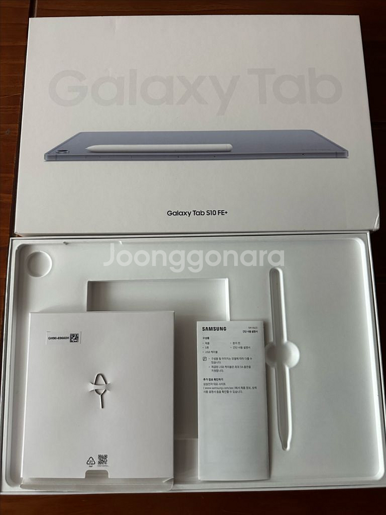 기기,케이블 등 구성품없는 빈박스입니다 사진상의 구성품만 있습니다 갤럭시박스 갤럭시탭 S10 FE+ 블루 128기가 2025년
