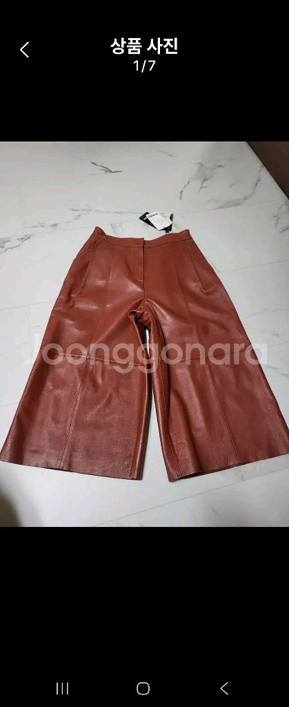 개인정보(거래정보)를 주고받는 행위는 사기에 노출될 수 있으므로 즉시 중고나라로 신고해 주세요고급스러운 양가죽 소재의 와이드 팬츠예요. 태그가 달려있는 새상품이고 브릭컬러가 어떤 옷과도 잘 어울릴 것 같아요. 편안한 착용감과 세련된 실루엣으로 다양하게 스타일링 가능해요. 총기장77