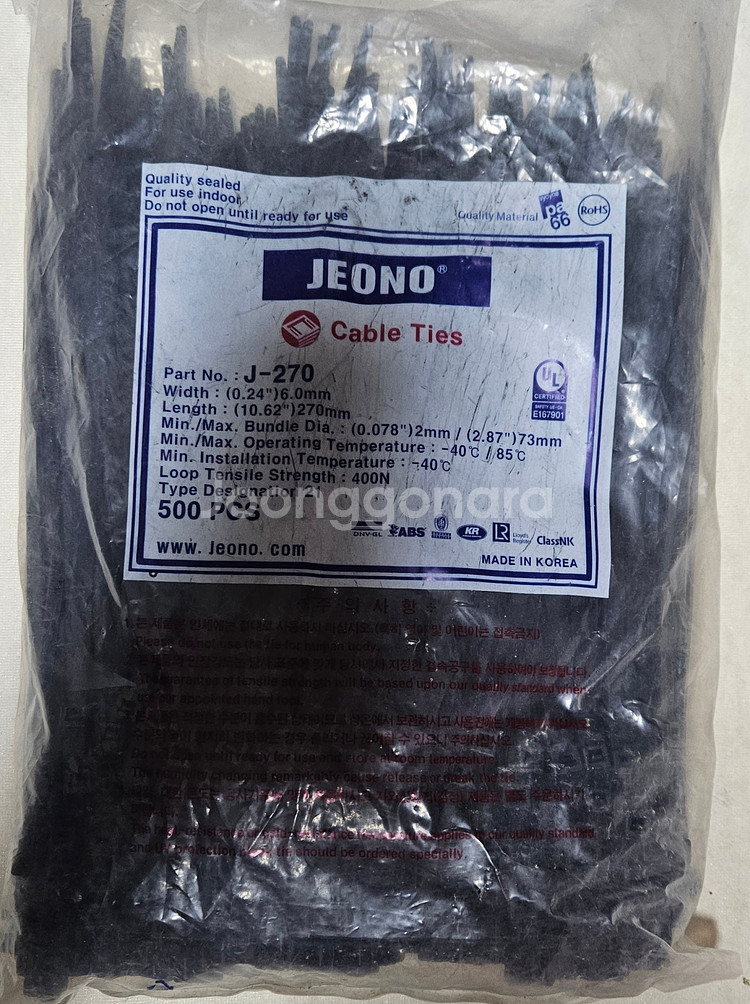 개인정보(거래정보)를 주고받는 행위는 사기에 노출될 수 있으므로 즉시 중고나라로 신고해 주세요케이블타이 대용량 세트 전기 작업이나 케이블 정리할 때 유용해요! 케이블 타이 타이길이 : 270mm 수량 : 1봉 500개 크기를 확인하시고 구매하세요 사용감 생활기스 사진 참고하세요