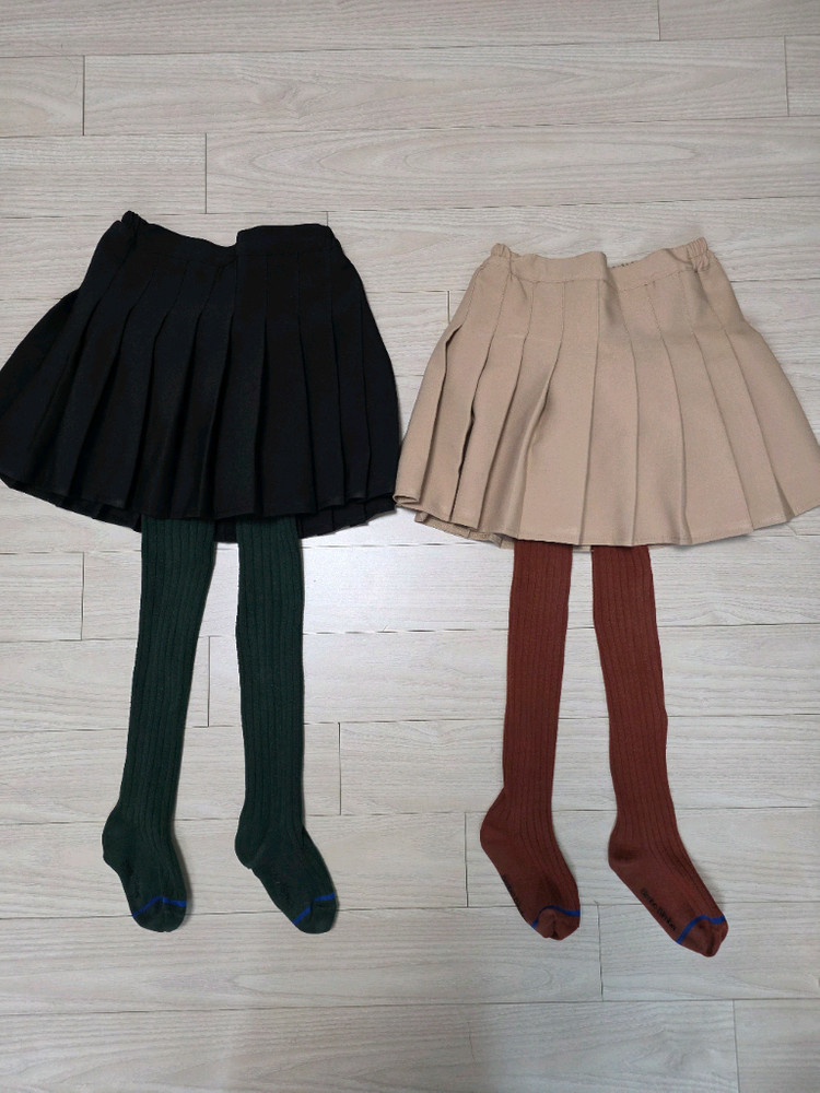주름스커트 사이즈 130 색상 블랙+베이지 작년 4월쯤 구매 스커트 4만원대/스타킹+니삭스3켤레 (총 9만원 정도에 구입) 베이지 올트임 한곳 빛 때문에 희끗하게 보임 허리 뒷 밴딩 스타일이고 속 반바지 있어 좋아요~ 저희 아이는 작은편이라 8세때 봄에 한철 입었어요~ 스타킹은 빔보빔바에서 작년 초봄 쯤 구입함 위 스커트랑 같이 입혔음 초록색 스타킹 사진찍다 작은 구멍 발견 니삭스 세켤레중 한켤레는 모이몰른꺼고 매장서 구입 리본이 포인트로 예뻐요 화이트라 이염 부분있음 빨간색 부분이랑 그레이색 니삭스랑 꿰메주면 되세요 양말 색감이 두루 잘 어울리고 예뻐요~ 운동화 190 신을때 딱맞게 신겨서 190신는 여아까지 잘 맞을꺼에요~ 전부 봄가을용 입니다.