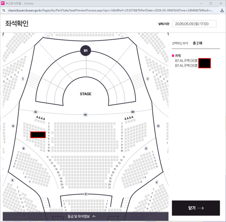 (최저가/최고자리) 임윤찬 리사이틀 부산 5/9 17시 1층 5열 2자리연석 거래는 모바일티켓 예매내역서 전달드립니다 5/9 17시 무대앞 1층 5열 2자리연석 - 두장에 58 (티켓값 포함)