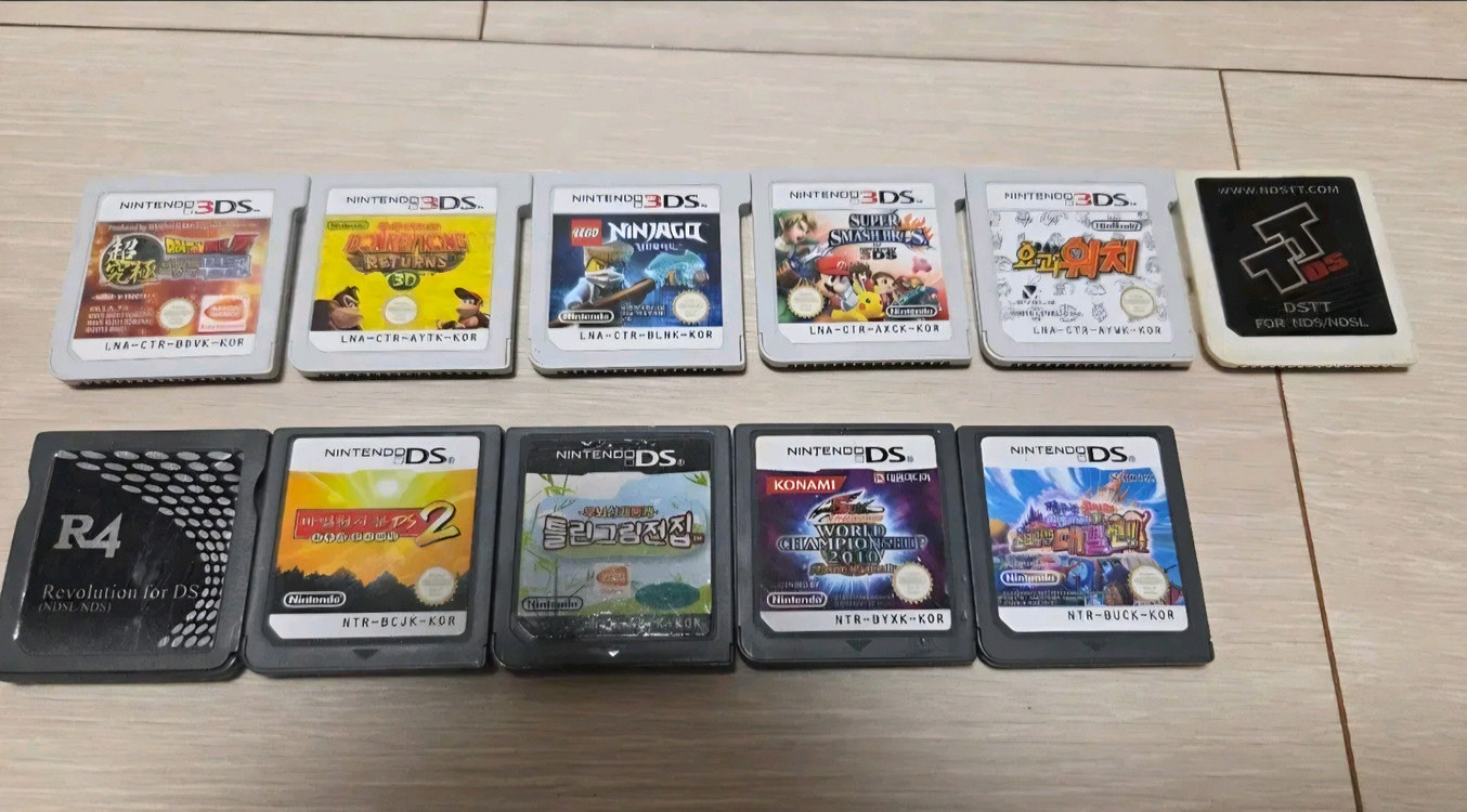 닌텐도 DS/3DS 알칩 종합게임 모음입니다. 케이스x 가능하면 찌릿장터에서 안전결제 권장드립니다. 일관: 8.0만원! 3DS: 닌자고, 슈퍼 스매시 브라더스,동키콩, 드래곤볼 초궁극무투전, 요괴워치 등 DS: 마법천자문, 틀린그림전집, 유희왕 2010, 짱구 쇼크성 랜드 등 🌟 개당: 1.6 합의가능 3개 이상 구매하시면 할인해드려요