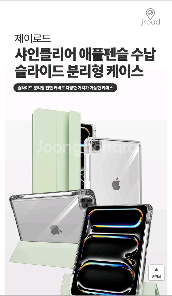 제이로드 아이패드 케이스입니다 - 애플펜슬 수납 가능 - 슬라이드 분리형 케이스 - 다양한 거치 모드 지원 색상: 그레이/ 아이패드프로13 모델/ 새상품입니다.사놓고 사용은 못했어요/
