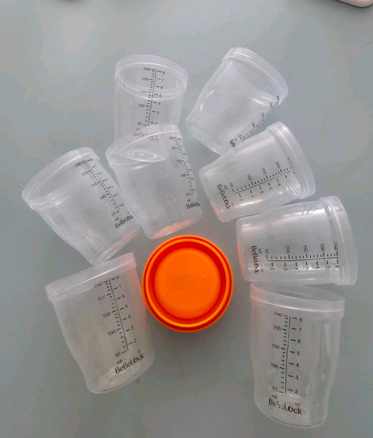 베베락 이유식 용기 240ml 8개예요 아이가 이유식을 오래하진 않았으나 중고상 사용감 생활기스 있을수 있어요 저렴히 올려요 몇몇개는 눈금 좀 지워져있으나 다 보입니다 이유식끼리 뚜껑위에 올려놓을수 있어 보관용이해요 중고거래상 교환환불 어려우세요 pp소재 스팀소독 끓는물 소독 가능 - 이유식 보관에 용이합니다 - 눈금 표시가 있어 편리합니다 - 뚜껑이 있어 위생적입니다