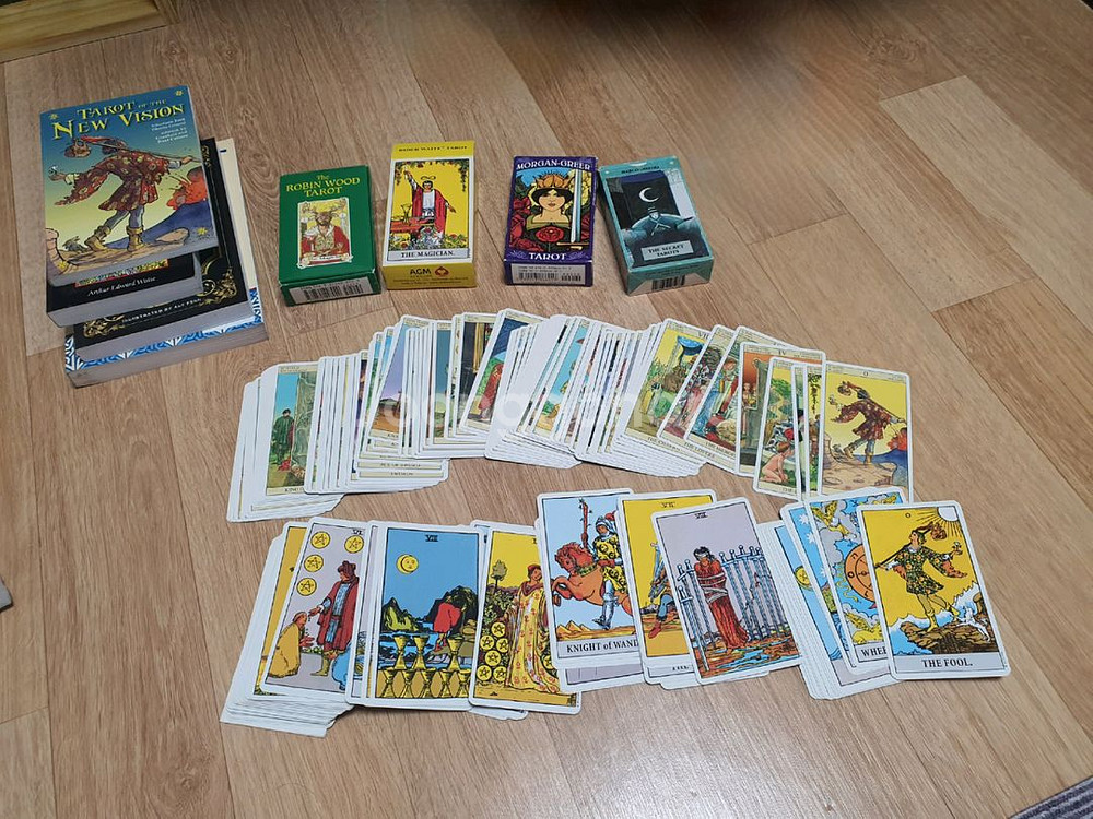 기초 입문용으로 널리 쓰이는 라이더웨이트 타로카드 포함, 인기 기종 6종류 타로카드 북세트 일괄 팝니다 시중 대형서점들 가보면 있는 기초 자료로 널리쓰이는 카드입니다 1 라이더웨이트 (북셋) 2 로빈우드(북셋) 3 모건그리어 4 뉴비전(북셋) 5 스팀펑크(북셋) ㅡ 카드 미개봉 6 시크릿 구성은 타로카드 6종 영문 설명서 포함돼고, 타로 보관주머니 두개 챙겨드립니다 북셋 표시된건 북세트 포함돼고, 기본 영문 설명서 동봉됩니다(한글 해설서는 없습니다) 기본 입문용으로 공부하는 분들이 참고해서 많이 공부하는 인기 종류들이고, 실사용 적어 보관한 제품이라 깨끗합니다. 서울 4호선 한성대입구역 부근 직거래 가능합니다 구성상품 무게가 있어, 택배거래시 만원 추가됩니다 문의사항은 톡으로 남겨주세요