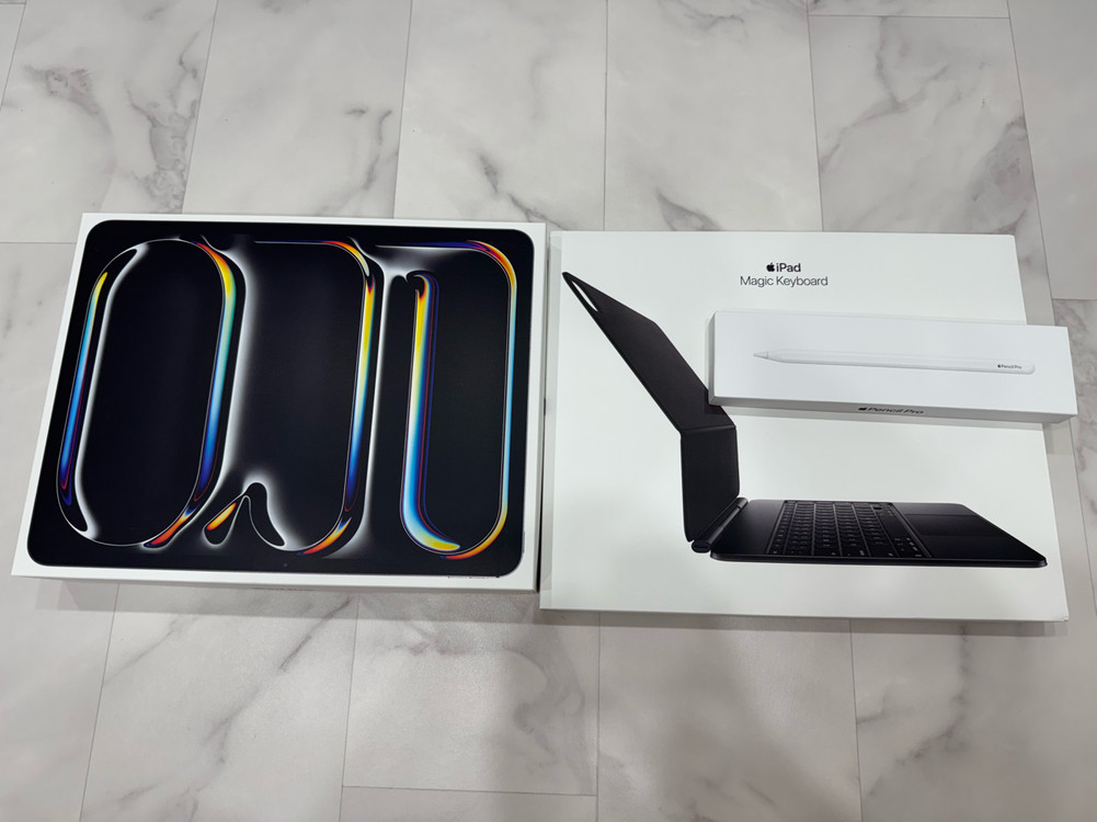 25년 10월 21일에 애플스토어에서 구매하였고 -아이패드 13 M5 1테라 블랙 셀룰러 스탠다드 글래스 329만9천원 -펜슬프로 19만5천원 -매직키보드 블랙 51만9천원 -애플케어 25만9천원 모두 해서 427만2천원 들었습니다. 애플케어는 구매 후 60일 되기 직전에 해서 27년 12월 20 일까지 적용됩니다. 5개월 간 집에서 유튜브와 ott용으로 사용했는데 이번에 노트북 들이면서 사용을 잘 안해서 판매합니다. 매직키보드에 물리고 쭉 사용하다가 판매용 사진 찍을 때 처음 떼봤습니다. 기스나 티끌 하나 없이 새거라 보시면 됩니다. 참고로 1테라 모델부터 램이 16기가 입니다. 카테고리에 m5가 없어 보기에 있는 m4로 기재했습니다만 25년에 출시된 m5 모델입니다. - 거래는 직거래로 고양시 회정동 또는 경북 구미에서 가능합니다