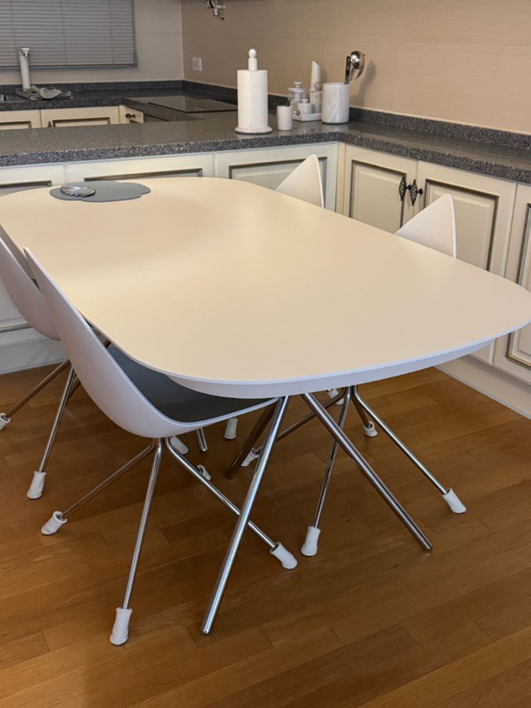 보컨셉 오타와 테이블과 체어 4개 셋트로 판매합니다. 작년 이사 취소되어 판매보류 했었구요. 곧 이사예정이라 다시 판매합니다. 22년 11월에 보컨셉 대구 쇼룸에서 구매했습니다. 185에서 250까지 확장가능 신혼 가구로 구매해서 거의 집밥을 안먹는 2인 가구라 정말 깨끗합니다ㅠㅠ 안쪽 의자 2개는 아예 사용을 안했어요.. (밥 먹을때도 늘 매트나 트레이 사용) 지역은 전라도 광주구요 용달이나 테이블 옮기시는거는 개인적으로 알아보셔야 합니다~~ 구매 원하시는 분은 연락 주세요^^ 체어만 개별로 판매안합니다!!