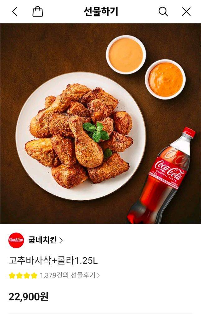급처 >>>굽네 고추바사삭 콜라1.25