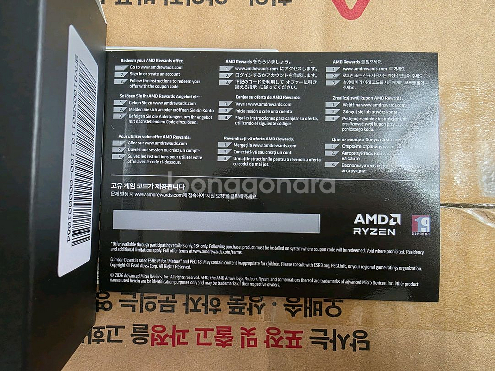 개인정보(거래정보)를 주고받는 행위는 사기에 노출될 수 있으므로 즉시 중고나라로 신고해 주세요붉은사막 게임쿠폰 판매합니다. 9800x3d cpu 구매하고 받은 게임쿠폰으로 해당 게임 하지 않아 판매합니다. 코드를 긁어서 사진 보내드릴 수는 있으나 대리등록은 불가합니다.