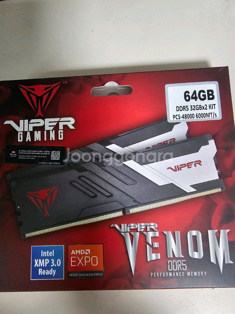VIPER VENOM DDR5 고성능 메모리 64GB (32GB x 2) 키트입니다 6000MT/s의 빠른 속도를 지원하며, Intel XMP 3.0 및 AMD EXPO를 지원하여 호환성이 뛰어납니다 고품질의 DDR5 메모리로 PC 성능을 한층 업그레이드해보세요 국내정품이니 as걱정안하셔도 됩니다. 철산역 근처 오시면 작동확인후 거래 가능합니다. 혹은 제가 직접 배달하고 댁에서 작동확인가능합니다. 배달비 광명시,금천구 1만. 인접한 구는 2만 안전거래택배가능 퀵거래 가능 안팔리면 가격낮출생각이니 네고문의말아주세요