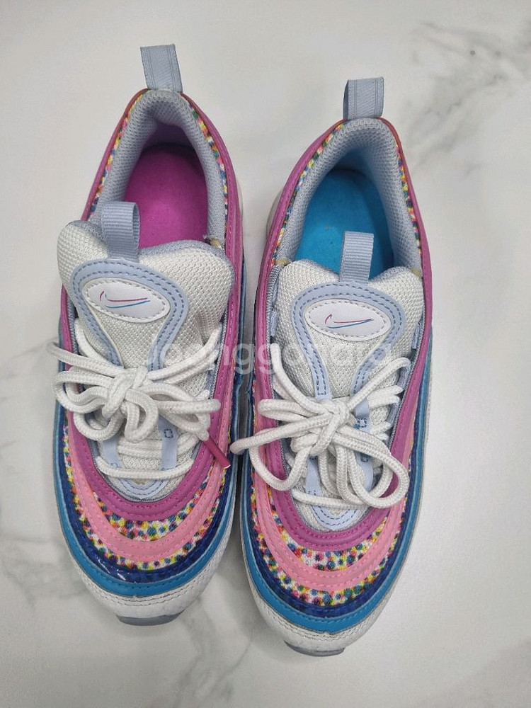 나이키 키즈 에어맥스97 여아 운동화 225 반값택포 가격입니다 cu,gs25 다 가능해요 사용감 있지만 얼룩 헤짐 없이 깨끗한 편이에요 발이 금방커버려서 한철도 못신었어요 바닥도 닳은 부분 없어요 예민하신 분, 비매너 거래는 사양합니다. 일반택배 원하시면 2천원 추가해 주시면 됩니다 개인판매인만큼 반품, 환불 불가하니 신중구매 해주세요