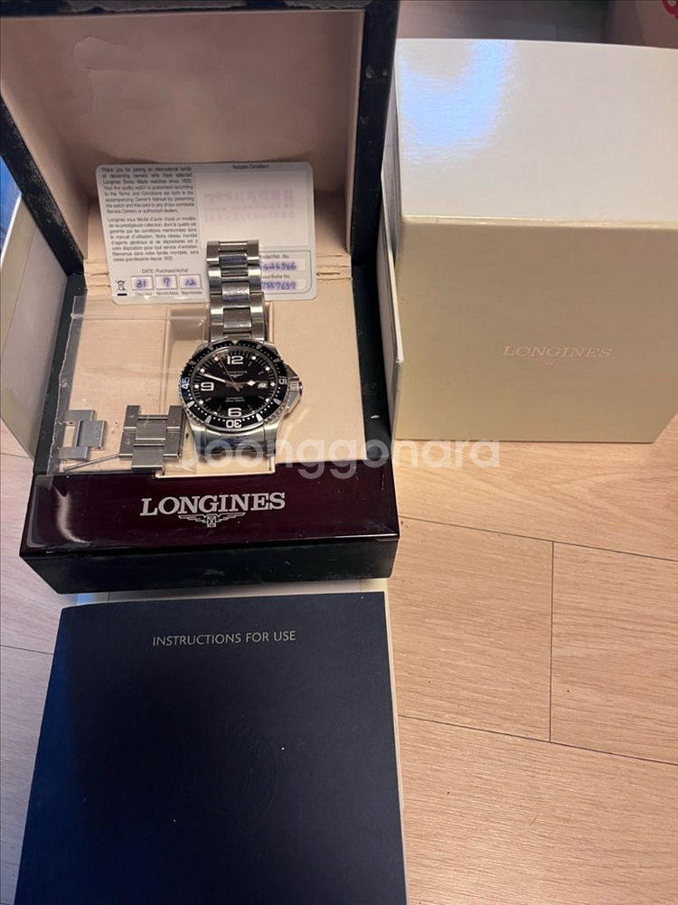 Longines HydroConquest 41mm 오토메틱 판매합니다. •2012년 구매 •보증서 포함 (정품) •실착 많지 않고 보관 위주로 상태 양호 •다이얼/베젤 깨끗, 큰 찍힘 없음 •브레이슬릿 생활기스 정도 (여분코 포함, 풀코) •최근 이틀 측정 일오차 +5~6초로 안정적 •박스는 세월감으로 미포함 가격 많이 낮춘 상태라 큰 네고는 어렵지만, 쿨거래 시 소폭 조정 가능합니다. 직거래 / 안전결제 / 계좌이체 모두 가능합니다.