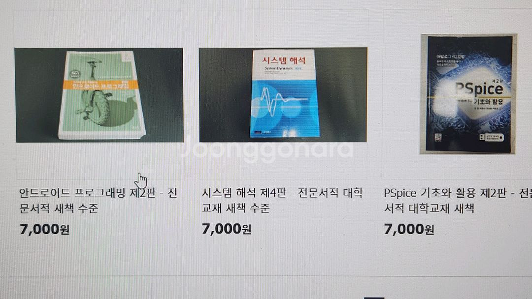 개인정보(거래정보)를 주고받는 행위는 사기에 노출될 수 있으므로 즉시 중고나라로 신고해 주세요각종 전문서적입니다. 낙장, 파본없이 깨끗합니다. 정가는 2~3만원대 가격입니다. 문의 주실 때는 책 제목으로 말씀해 주세요. 택배비는 3,500원이며 수원 영통 직거래됩니다.