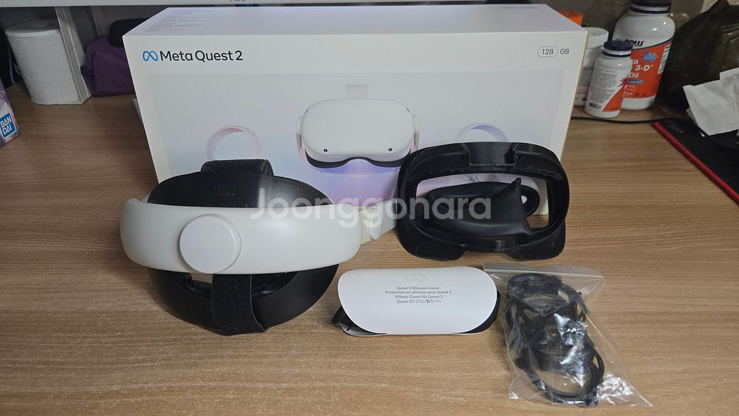 메타 퀘스트2 128GB 제품입니다. 초반에 재밌게 사용하다가 게임이 적어서 점점 안 쓰고 포장해 놓은 것을 집안 정리하면서 나와서 처분할 겸 싸게 올려봅니다. 안전거래 + 택배거래는 CU 반값택배로 보낼 예정입니다. 그러면 수수료+택배비 해서 4천원정도 나가서 등록은 GS택배로 해놓았습니다. 직거래는 대구 현풍 디지스트 주변에서 가능합니다. 그냥 물어보시고 가시는 분이 많아 거래는 입금 먼저 하시는 분과 진행하겠습니다. 간단한 VR 입문용으로 추천드립니다. 구성품은 본체와 박스를 포함하여 모두 있습니다. 추가적으로 아래의 구성품도 보내드립니다. 흑어환기(동양인 얼굴 형태로 맞추어 놓은 안면 가이드) 안경가이드(안경알을 본체에 직접 연결하여 사용 하는 제품, 필요하실지는 모르지만 제 안경알도 껴두었습니다.) 키위 헤드스트랩 (꺼내보니 옆에 가이드 부분이 변색이 왔네요. 사용엔 문제 없어 보이는데 찝찝하면 하나 구매하심이 좋아보입니다.) 정품 실리콘가이드 (이유는 기억 안 나는데 본사에 따로 신청하면 보내줬습니다.) 렌즈 보호대 (두꺼운 천+스펀지로 되어있는데 본체에 껴놓았습니다.) 기기는 초기화 해 놓았고, 양쪽 컨트롤러 배터리도 교체 해 놓았습니다. 기기에 자잘한 생활 기스나 이염 등은 있습니다. 정상 작동은 확인 했습니다. 렌즈사진 찍어놨습니다. 안경가이드가 렌즈를 전체적으로 커버하는 구조여서 렌즈가 외부로 노출되지 않아 제법 깨끗하다고 생각 됩니다. 제가 보기엔 기스는 없는것 같은데 렌즈 구조가 단일 구조가 아닌 내부에 계속 층이 있는 구조여서 특정 각도에서보면 실금같은게 가끔 있어서 실제로 기스인지 내부의 층인지 햇갈리는게 좀 있습니다. 하지만 착용해서 보면 문제는 없어보입니다. 이 사이트는 사진 수 제한이 있어 네이버 중고나라 까페에 사진 추가 해 놓았습니다. 확인해보시고 구매 판단 바랍니다. 정상작동은 확인하였고, 사용에 큰 문제는 없었습니다. 방정리가 목적이라 귀찮아서 그냥 싸게 올리는 것이니 환불은 받지 않습니다. 필요하시면 추가 사진 등을 보내 드릴테니 확인해보시고 구매하시기 바랍니다.
