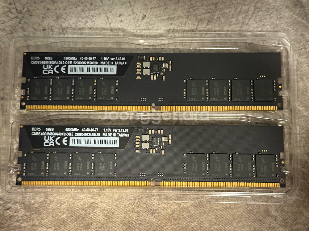 개인정보(거래정보)를 주고받는 행위는 사기에 노출될 수 있으므로 즉시 중고나라로 신고해 주세요커세어 DDR5 4800 메모리 16기가 두개 구성 32기가입니다 40 만원에 판매합니다 직거래는 서울 코엑스나 용인 동백입니다
