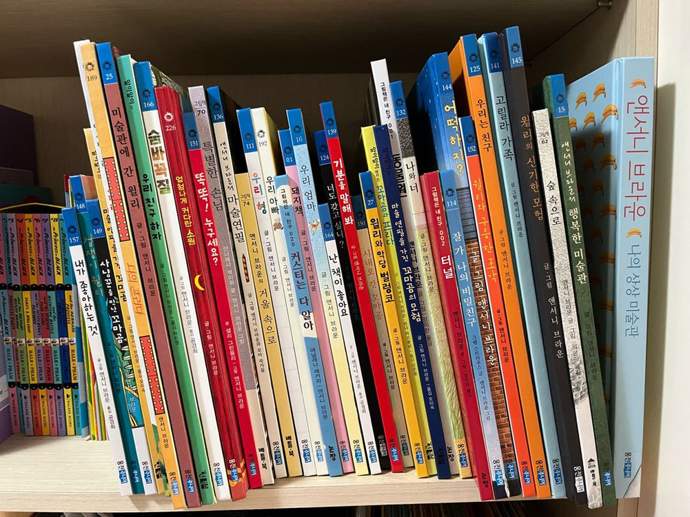 개인정보(거래정보)를 주고받는 행위는 사기에 노출될 수 있으므로 즉시 중고나라로 신고해 주세요- 앤서니브라운 전집 41권 - 구매한건 5년 정도 된 것 같아요. 전집 이후로 새로나온 책도 사서 더 추가 됐어요. - 41권엔 색칠놀이북 2권과 엽서책도 포함 됩니다. - 전체적으로 낙서 찢김 없이 상태 좋아요.