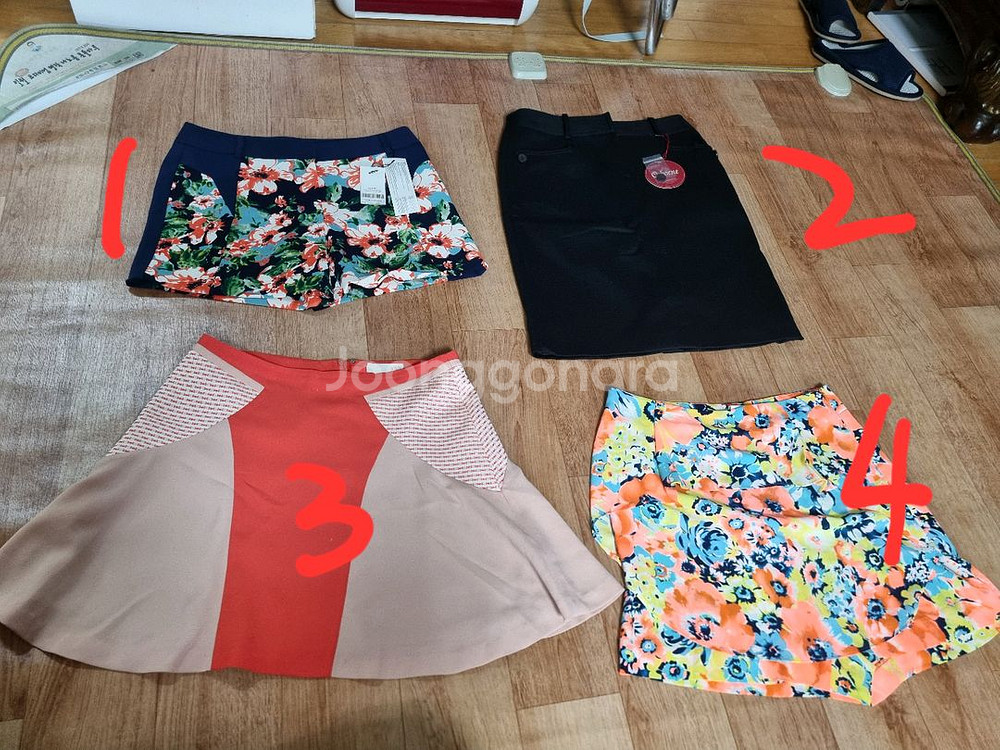 미니 스커트 4종 판매해요 다양하게 꾸밀수있는 치마이고 거의 새것같아요 사이즈는 사진순서대로 참고하신고 서로 비슷한 55사이즈입니다. 1번 꽃무늬와 4번 꽃무늬는 바지형태예요, 1번 : 허리단면 38cm , 길이 35cm 2번 : 허리단면 37cm , 길이 53cm 3번 : 허리단면 36cm , 길이 41cm 4번 : 허리단면 36cm , 길이 41cm 다량구입 시 할인해드려요, 🚫 환불 노우!! 🚫 반품 노우!! 🆗 쿨거래 오케이!! 🆗 반값택배 오케이!! (택배비는 구매자님 부담)