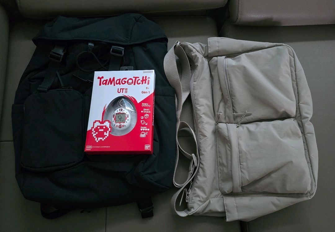 유니클로 다마고치랑 백팩, 크로스백 일괄 판매해요. 백팩, 크로스백 미사용 새제품입니다. 다마고치는 건전지 넣고 한번 해봤어요. 새것과 동일합니다. 매주 월요일날 우체국택배로 박스 구매해서 보내드릴께요. 다른요일은 택배를 못내드려서요. 양해 좀 부탁드립니다.