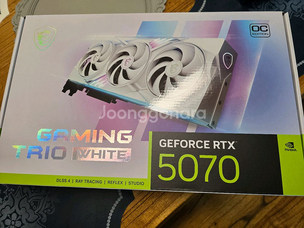 개인정보(거래정보)를 주고받는 행위는 사기에 노출될 수 있으므로 즉시 중고나라로 신고해 주세요RTX 5070 게이밍 트리오 화이트 그래픽카드입니다. 박스와 구성품이 모두 포함되어 있고 보호 비닐도 다 붙어있어 있습니다.