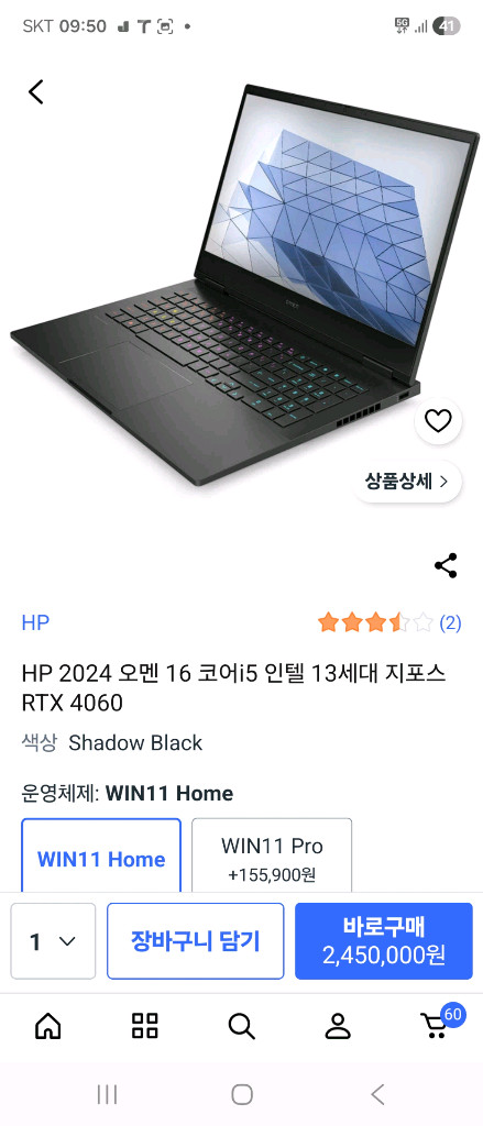 HP 오멘 16 게이밍 노트북 판매합니다 인텔 13세대 i5 프로세서와 RTX 4060 그래픽 카드가 탑재되어 있어 게임 및 다양한 작업을 원활하게 즐기실 수 있습니다 16인치 화면에 1920x1080 해상도를 지원하며, 165Hz 주사율로 부드러운 화면을 경험하실 수 있습니다 운영체제는 WIN11 Home이 설치되어 있습니다 Shadow Black 색상으로 고급스러운 디자인을 자랑합니다 구매 : 25년 2월, as ~26.5.25일까지